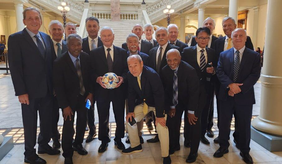 The governor assured us that he would find a place in his office for the soccer ball we signed. We also gave him one of our jerseys and additional information.