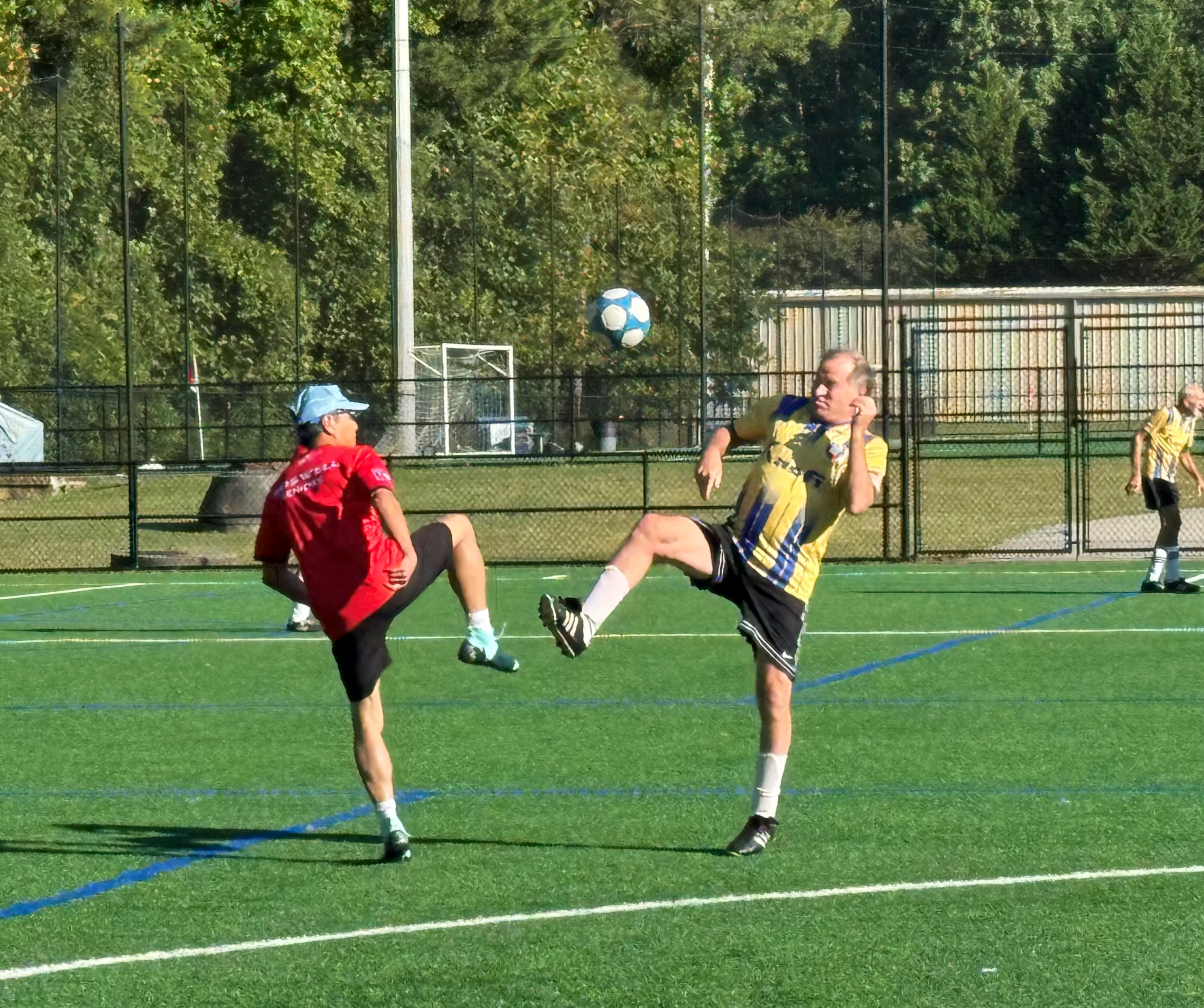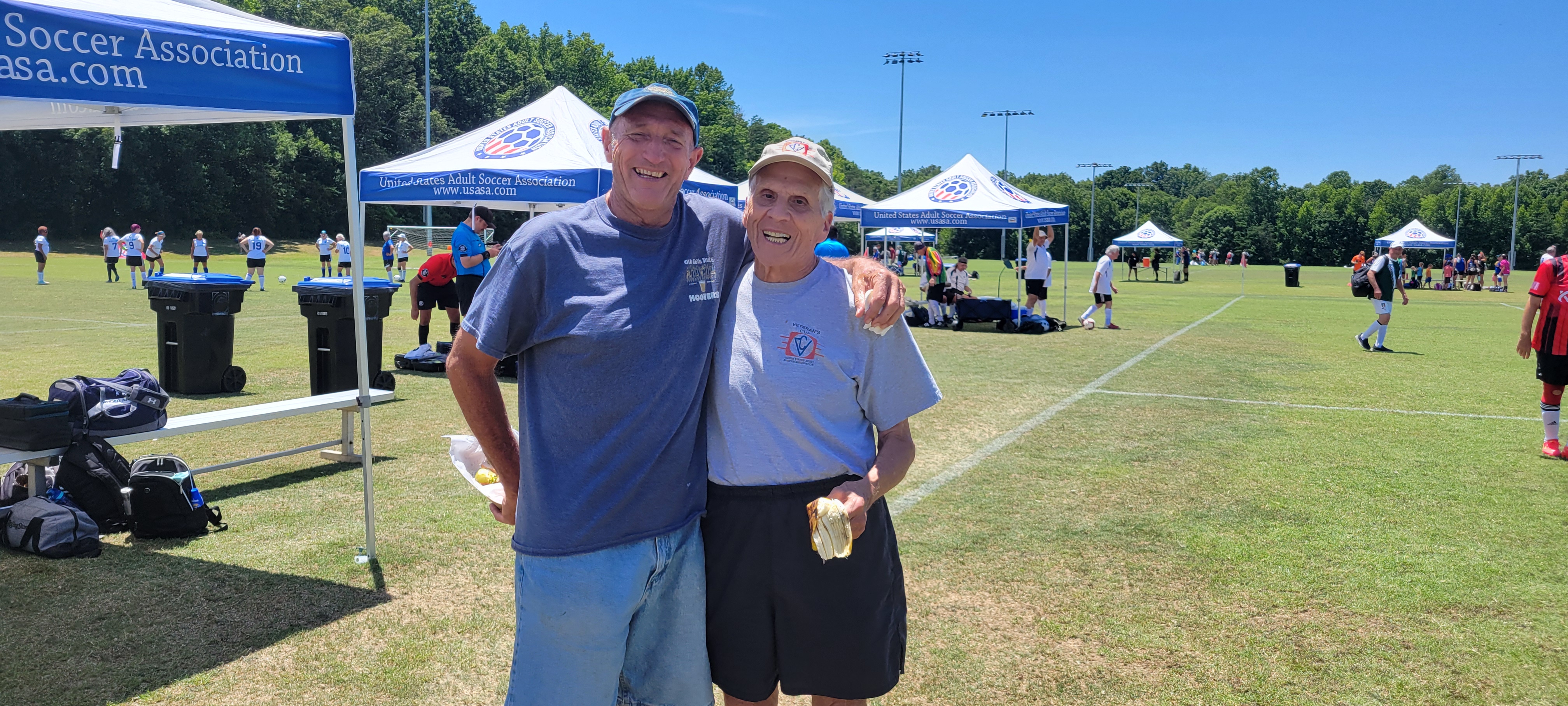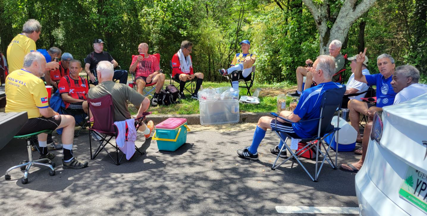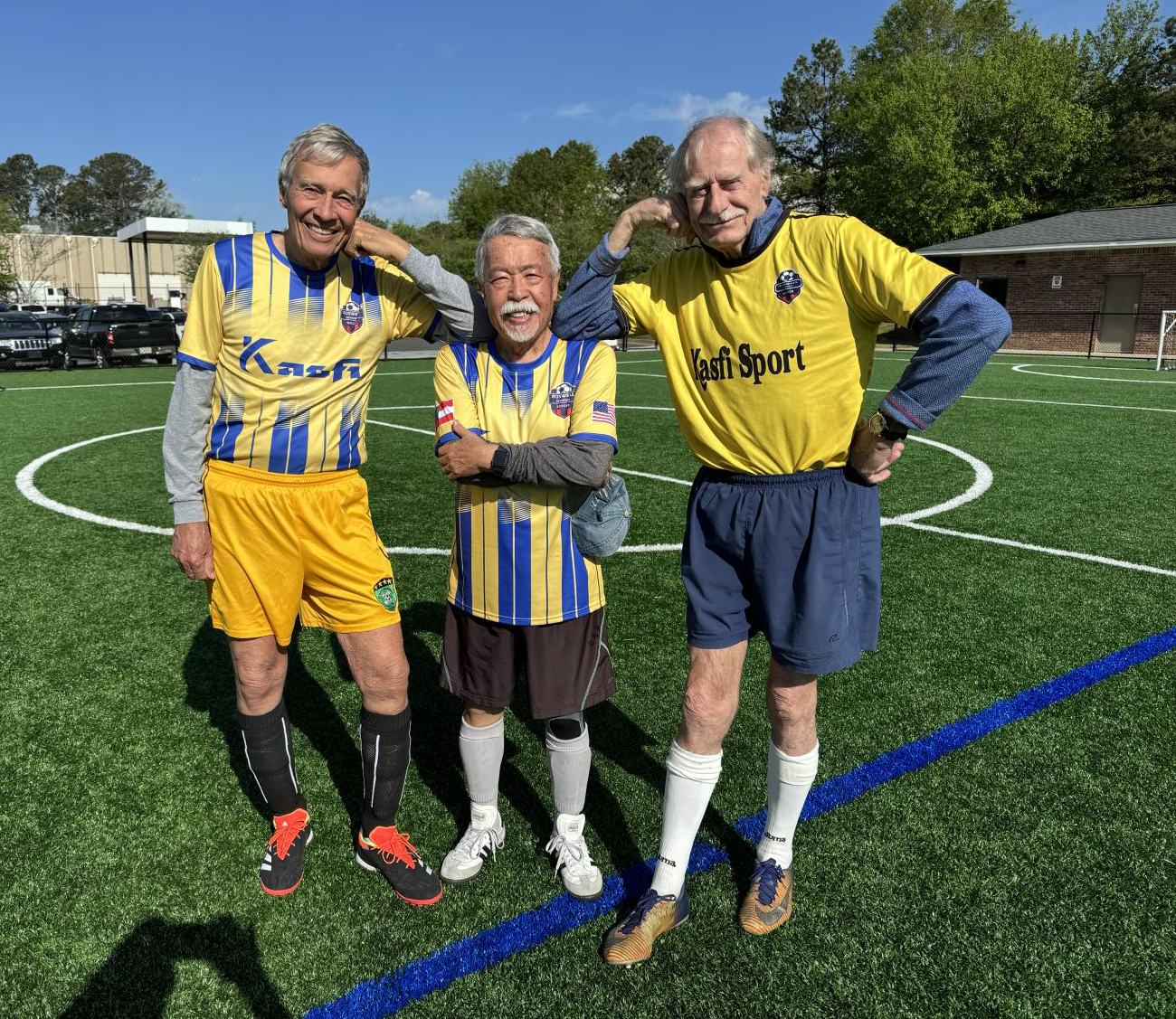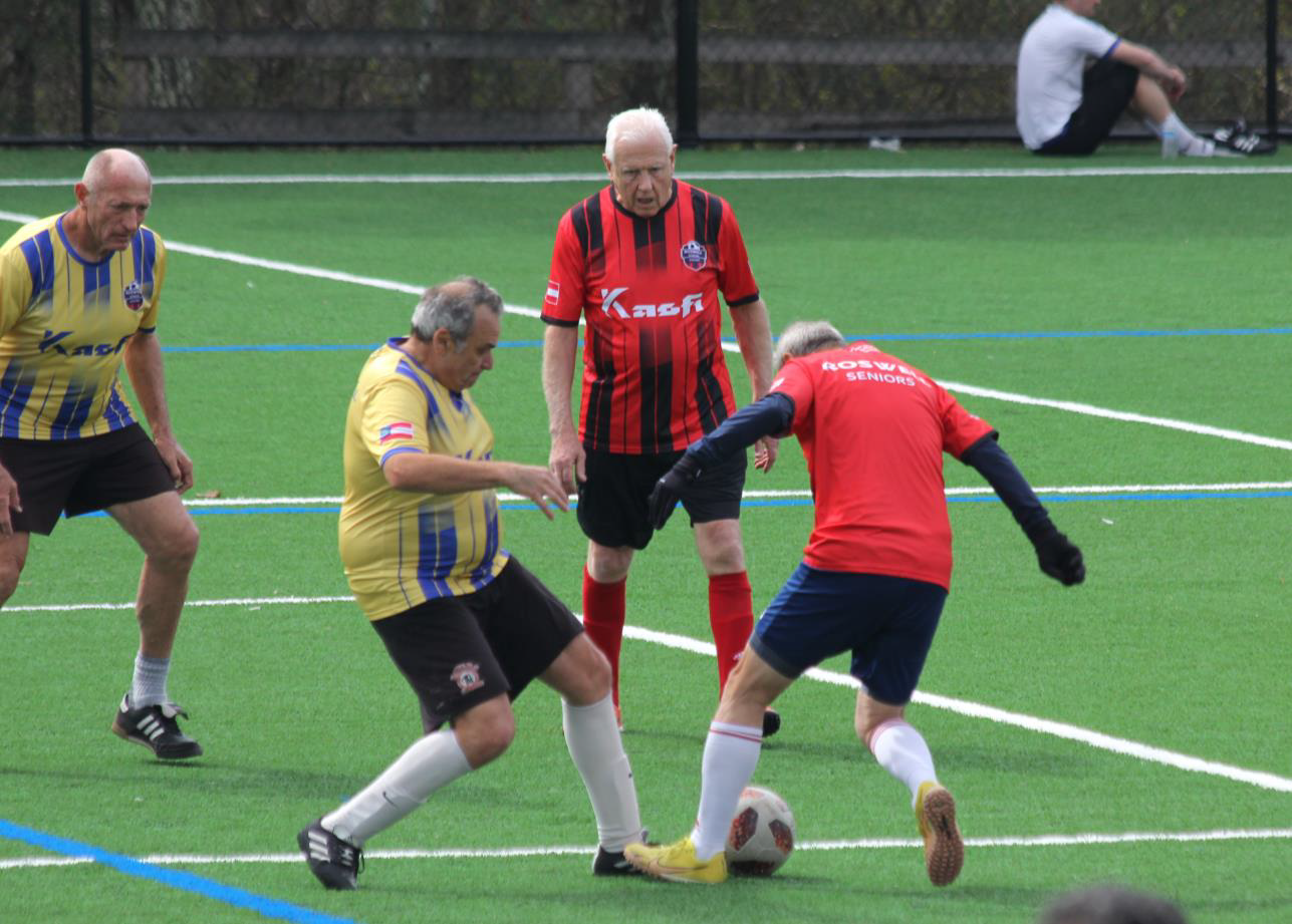 Our three oldest players are still enjoying the games. Folks, stay healthy and never give up on soccer with ROSWELL SENIORS.